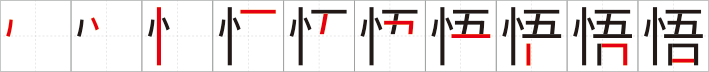 物事を知ることや気づくことを意味する文字で、真理を会得するといった意味合いもある奥の深い漢字です。この文字は日本人の名前にもよく使われていて、「サトル」と読むことが多いです。