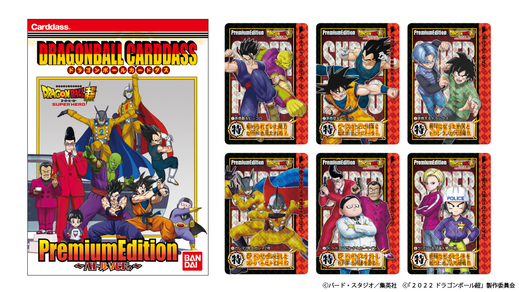 スペシャルな台紙にドラゴンボールカードダスが6枚封入されたアイテムだ! アルティメット悟飯&潜在能力を解放したピッコロをはじめ、映画『ドラゴンボール超 スーパーヒーロー』のキャラクターがラインナップされているぞ。