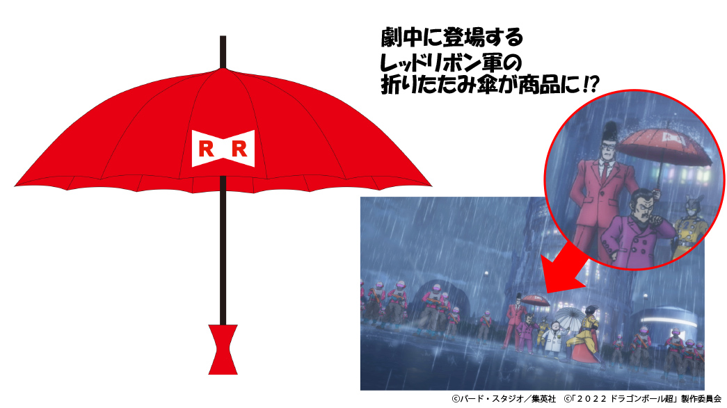 劇中でカーマインがマゼンタに差し向けた折りたたみ傘がグッズ化!! 柄の部分がレッドリボン軍のマークをモチーフとしている、こだわりのデザインだ!!