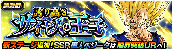 サイヤの日を記念してドッカンフェスが開催! 新SSRとして【孤独な闘い】魔人ベジータが登場! 魔人ベジータはリーダースキルで「魔人ブウ編」または「ベジータの系譜」カテゴリに属する仲間を強化!! 「天才戦士」カテゴリを含む場合はさらに効果がUPするぞ!! ドッカン覚醒後はバトル中に条件を満たすことでアクティブスキルを発動可能だ!