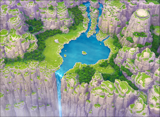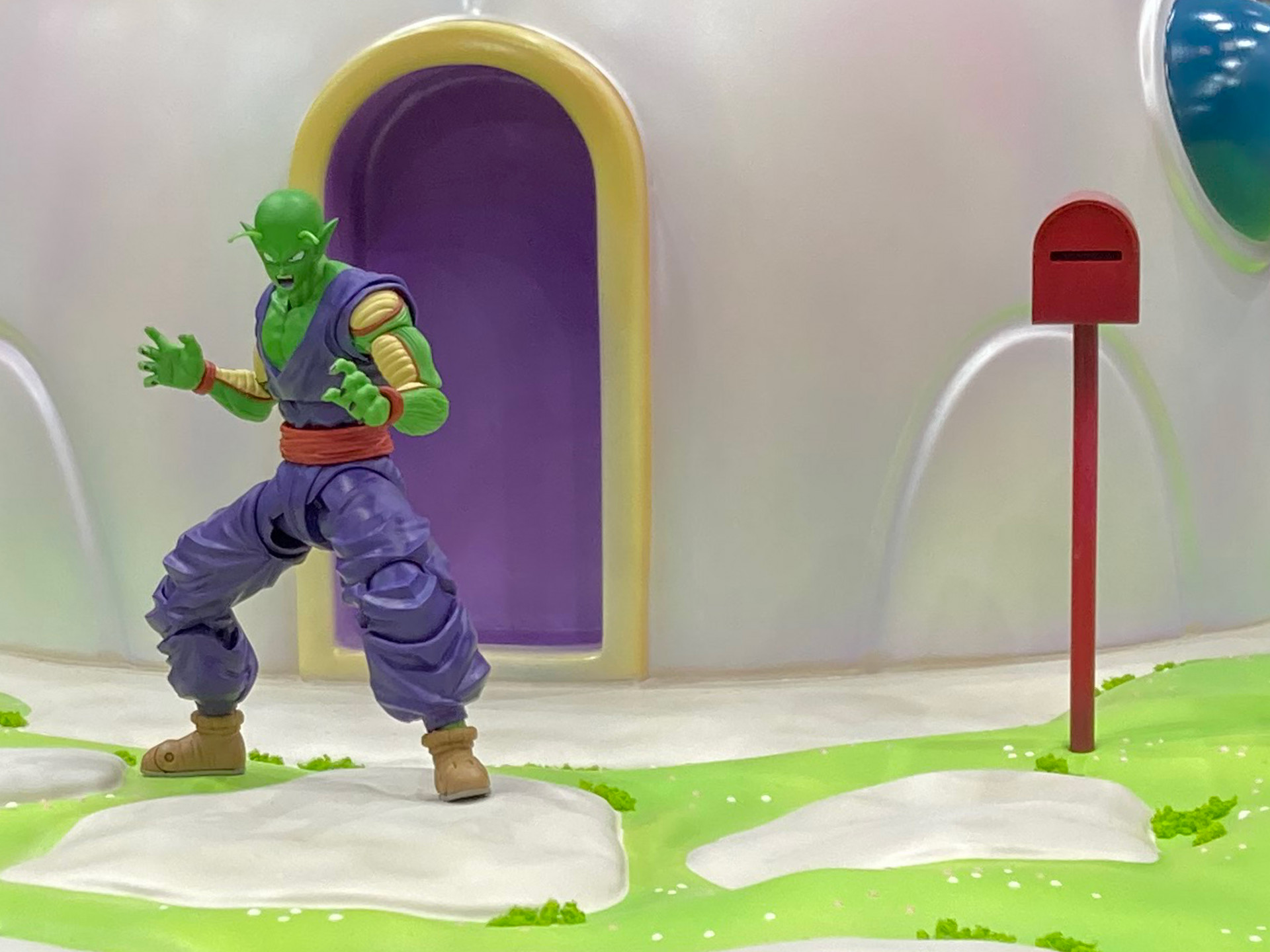 川辺に建つ可愛らしいフォルムの建物が、ピッコロさんのお家です。どうやらお家、光の当たり方で七色に見えるそうです! 神秘的で、かつて神殿に住んでいたピッコロさんにぴったりです。