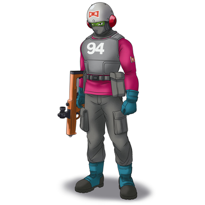 尖った耳を覆い隠すヘルメットは、レッドリボン軍らしく赤の差し色がGOOD!! 他の兵士は、ヘルメットではなく帽子を被っている人物もいるそうです。